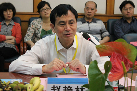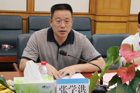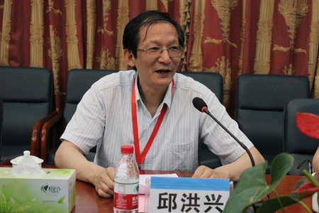 评估视察小组组长邱洪兴教授讲话并作评估报告