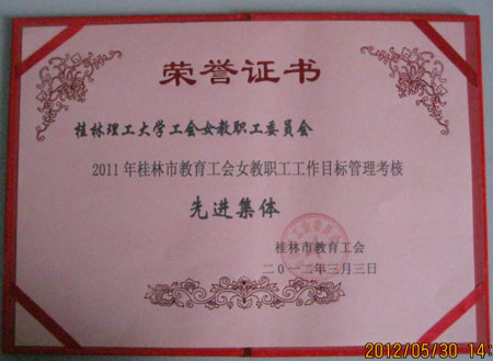 5月30日,桂林市总工会教育工会召开三届五次全会,通报表彰了教育工会系统2011年度先进单位和个人。我校工会荣获2011年桂林市教育工会工作目标管理考核一等奖、校女教职工委员会荣获2011年桂林市教育工会工作目标管理考核先进集体、外国语学院外语专业教研室荣获桂林市“五一女职工标兵岗”荣誉称号。 近年来,我校工会、女职工委员会及二级分会认真贯彻落实学校党委和行政的工作部署,在市教育工会的指导下,突出“巩固提高,有所创新,有所发展”的总体目标,紧紧围绕学校中心工作任务,抓重点,攻难点,确保了年初制定的工作目标任务的圆满完成,工会工作和女职工委员会工作均取得了显著成效。各二级分会在学校工会的号召下,努力工作,涌现出了如外国语学院外语专业教研室等先进基层组织,为学校又好又快的发展,辛勤工作,取得了扎实有效的成绩。