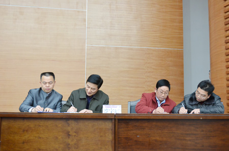 3月1日下午,我校在图书馆报告厅举行2011年度安全稳定工作会议暨安全稳定目标管理责任状签字仪式。学校校长张学洪,学校党委副书记、纪委书记赵君,党委副书记王赣华,副校长肖岳峰、陈学军、吴志强、周国清等全体在校领导出席会议。学校副处以上领导干部以及各二级党委党委委员,直属单位、校办企业负责人参加了会议。