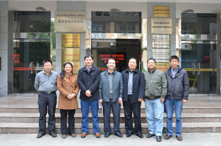 11月27日上午,广西师范学院副院长元昌安一行5人来访我校。周国清副校长接待了来访人员,校办、科技处、地球科学学院、环境科学与工程学院等相关部门负责人参加了会议。 周国清副校长代表学校热烈欢迎广西师范学院一行来访,并简单介绍了我校在科研、就业、教学、平台建设等方面的基本情况,并希望以后能够在多领域与广西师范学院加强交流合作。 元昌安副院长对我校的盛情接待表示衷心的感谢,并对我校近几年科研工作以及学校建设等方面取得的成绩表示赞赏,随后元昌安副院长介绍了广西师范学院建校近60年的发展历程以及目前面临的挑战,希望在学校更名大学、重点实验室验收、科研项目申报、科研人才引进与培养等方面与我校进行深入的交流探讨。 与会人员就上述几个方面进行了交流,会后广西师范学院一行还参观了我校“有色金属及材料加工新技术”教育部重点实验室,并与我校重点实验室负责人就实验室建设、运作管理、人员配置等问题交换了意见。