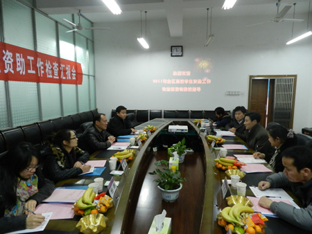 12月23日,自治区教育厅高校学生资助工作检查组到我校检查,学生资助管理中心在学工处会议室向检查组汇报了我校2011年学生资助工作的开展情况,校党委王赣华副书记出席汇报会并致辞。 汇报会后,检查组查阅了我校学生资助工作文件、归档资料,并实地检查了我校学生资助工作办公场所、勤工助学服务点等。检查组对我校认真贯彻国家学生资助政策,采取多种举措积极为家庭经济困难学生进行帮扶,并注重学生感恩与诚信教育,不断提高学生综合能力等工作予以了充分肯定。 2011年,我校学生资助工作完善体系,强化特色,资助育人,在继续保持我校勤工助学工作内涵发展的基础上,开展了不少亮点工作,如实行受助学生参加公益服务活动登记制度、开展辅导员暑期家庭经济困难学生家访工作、推进学生资助工作信息化建设、二级学院学生励志社团蓬勃发展等。