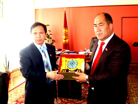 周国清副校长与吉尔吉斯斯坦奥什国立大学校长互换礼物