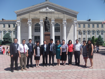 在吉尔吉斯斯坦民族大学与校方人员合影