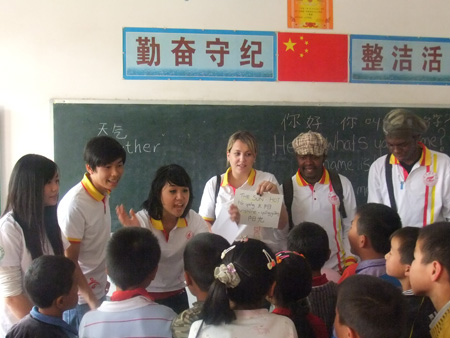11月23日,由我校管理学院和国际教育学院合办的“爱心无国界”——桂林理工大学中外学生关爱农村留守儿童的支教活动在雁山镇旦家中心校成功举行。 本次活动有来自我校的英国、加拿大、俄罗斯、喀麦隆、越南和吉尔吉斯斯坦等十多个国家的留学生参加了教授英语等义务支教活动。留学生们激情、风趣和幽默的教学方式深得孩子们的喜爱,也得到了学校教师的高度认可。 来自印度尼西亚的留学生吴秀丽(SANDRA Gracia)告诉记者,他们在国内时就经常到学校和社区做义工服务,来中国后也希望尽自己所能参与学校组织的活动,把“爱心无国界”的温暖在中外学生的牵手中传递下去。 桂林日报和桂林晚报对我校的支教活动进行了报道。