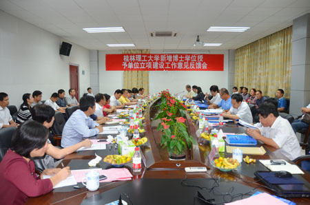 10月16日,自治区新增博士学位授予单位立项建设工作检查专家组一行10人在组长、广西大学罗廷荣副校长,副组长、自治区学位办林军副主任的带领下来我校检查新增博士学位授予单位立项建设工作。学校党委副书记王赣华,副校长肖岳峰、陈学军、吴志强、周国清,正厅级调研员张鹏,校长助理、人事处处长华桂林及申博学科带头人、各职能部门和各学院领导等有关人员参加了汇报会、意见反馈会。陈贵英副校长参加了意见反馈会。 学校党委副书记王赣华教授欢迎自治区专家组的到来,感谢自治区及教育厅对我校建设的关心和支持。他说,我校自启动申博工作以来,校党委、行政始终把建设博士学位授予单位作为学校工作的大局来抓,全校上下统一认识,落实责任,扎实做好新增博士学位授予单位立项建设各项工作,在科学研究、人才培养、师资队伍、公共服务体系建设等方面取得了明显成效。2011年通过中期检查后,我校根据中期检查专家组意见,进一步加强立项建设工作的力度,发现问题及时整改,力争展示申博学科亮点,彰显学科特色和优势,目前,立项建设工作取得了重要的阶段性成果。王副书记希望此次专家组对我校立项建设工作多提宝贵意见和建议以促进我校把申博各项工作抓实、抓细、抓好,希望各相关学科建设单位要抓住这一学习契机,认真听取专家组的建议和意见,全力做好新增博士学位授予权的建设与验收工作,以优异成绩通过国务院学位委员会的验收。 检查组罗廷荣组长、林军副组长先后发言,介绍了此次检查的主要目的、意义及其他要求。 吴志强副校长主持了汇报会并现场汇报了我校近三年来博士点立项建设学科和支撑学科的总体建设思路、主要建设措施、建设成效、自评结论等总体情况。 地球科学学院、材料科学与工程学院、环境科学与工程学院相关负责人在会上也分别汇报了“地质资源与地质工程”、“材料科学与工程” 、“环境科学与工程”三个博士点立项建设学科建设情况。 汇报会后,专家组一行在吴志强副校长的全程陪同下先后在屏风校区和雁山校区考察了我校的地质博物馆、地质工程中心重点实验室、广西有色金属及特色材料加工省部共建国家级重点实验室培育基地、广西环境污染控制理论与技术重点实验室等,查检了“地质资源与地质工程”、“材料科学与工程” 、“环境科学与工程”三个博士点建设学科的建设成效、学科特色、建设条件等方面内容,审阅建设学科和支撑学校的相关材料。 结束检查后,专家组召开意见反馈会。罗廷荣组长首先代表专家组就我校博士点授权建设工作进行整体反馈。他说,通过听取汇报、实地调研,专家组成员一致认为桂林理工大学的申博建设工作取得了较为突出的成绩,主要表现在:一是学校领导高度重视博士点授权建设工作,专门成立了领导小组、办公室,建设措施有力,成效显著;二是学校不断加大经费投入,健全管理制度,平台建设卓有成效;三是人才队伍实力增强,科研能力明显提高;四是人才培养质量稳步提升;五是基础建设、公共服务平台建设不断推进;六是建设立项的3个授权学科和3个支撑学科建设取得明显进展,后期发展方向明确,已经达到了建设规划的预期目标。随后,专家组成员分别对“地质资源与地质工程”、“材料科学与工程” 、“环境科学与工程”三个授权学科及支撑学科的查检情况逐一进行了反馈,并就进一步加强我校申博建设工作提出了中肯的意见和宝贵的建议。 意见反馈会上,王赣华副书记对专家组的辛勤工作和悉心指导表示感谢。他说,专家组认真检查了我校申博学科的建设情况和公共服务体系建设情况,审阅了相关材料,认真负责地分析立项建设学科建设成效,肯定成绩,指出不足。提出了中肯、客观、明确、到位的意见。我校将按照专家组的意见进一步加强和改进工作,不辜负专家组的期待,争取早日通过国家新增博士学位授予单位检查验收。
