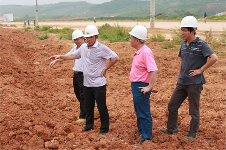 7月13日上午,张学洪校长到扶绥校区检查指导工作,肖岳峰副校长和扶绥校区建设指挥部副指挥长罗雪平、劳景寮、李辉等陪同张校长查看了扶绥校区建设情况。 肖岳峰副校长向张校长介绍了扶绥校区目前的建设情况,陪同张校长查看了一期工程三个标段的工程进展情况。张校长肯定了指挥部前一阶段的工作,希望下一步继续努力,做好管理,进度较慢的主体工程要加大管理力度,采取措施,加快进度,保证今年九月份新生顺利入学。