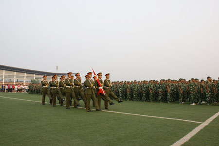 红旗飘飘,笑面未来——雁山校区2010级新生第一次参加升国旗仪式