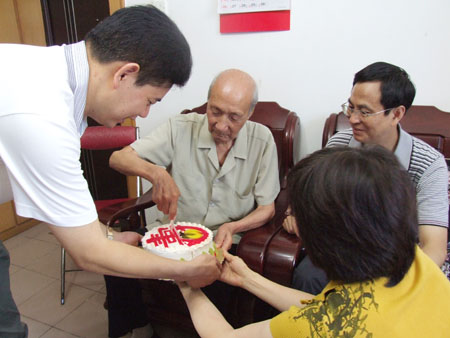 柳老与大家分享生日蛋糕