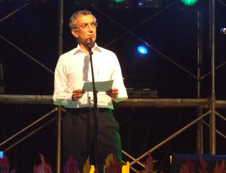 9月18日晚,印度最富盛名的“海洋乐队”在我校体育馆三楼上演了一幕原汁原味的印度摇滚乐表演,喝彩声响彻整个会场。印度驻中国大使馆公使齐哈布拉和夫人、印度驻广州总领事潘迪、桂林市副市长何良军、我校副校长吴志强等领导出席了晚会。中印双方有关部门多位负责人和我校千余名广大师生观看了当晚的演出。 吴志强副校长首先代表桂林理工大学以及全体师生对印度客人的到来表示热烈的欢迎和诚挚的问候!他说,此次专场演出,必将进一步加深学校师生乃至桂林人民对印度人民、印度文化艺术的了解,增进中印人民的传统友谊。也会对我校广大师生拓展视野、提高艺术修养和审美情趣,提升人生境界起到积极的促进作用。 桂林市副市长何良军在致辞中说,摇滚乐是年轻人特有的语言,希望两国青年通过音乐和文化交流,增进了解,加强信任,发展友谊。相信通过互办“中国印度年”和“印度中国年”等系列活动,中印两国在各领域的交流与合作将得到进一步发展,两国人民的友谊将进一步加深。 印度驻中国大使馆公使齐哈布拉在致辞时表示:今年是印中建交60周年,对印中双方来说,都是一个值得庆祝的里程碑事件。今晚的演出,我们把缤纷的印度文化带到了桂林。希望通过印度艺术节的一系列活动搭建起印中双方沟通的桥梁,增进中国人民对印度以及印度文化的了解,使印中两国的友谊纽带更加牢固。 印度海洋乐队当晚共演出了10首浓郁南亚风情的歌曲,有热爱和平、反对战争题材的《KYA MALOOM》、《BANDEY》,表达了中印两国历史文化交流的源远流长和两国人民热爱和平、反对战争的强烈愿望。有关注环境的《BONDHU》和《BOLL WEEVIL》,体现了对环境和自然的深切关注。而《JHINI》则阐述了生命就像一件轻薄的衣裳,要小心地穿着的深邃理念,演出最后在一首意境深远悠长的宗教圣歌《KANDISA》中结束。 整场晚会气氛热烈、掌声不断。演唱者洪亮的声音和强烈的打击乐给观众们带来极大的震撼,不时把现场气氛推向高潮。观众们有时凝神细听,有时用力拍手打着节奏,心中的热情如同脱缰的野马,喷薄而出,享受了一场浓郁地域特色的精神盛宴。 今年是中印建交60周年,为表示纪念,中印两国政府决定分别在印度举办“印度中国年”和在中国举办“中国印度年”系列庆典。作为“中国印度年”活动的一部分,印度政府派出印度最富盛名的“海洋乐队”到中国巡演,旨在促进两国人民间的文化交流。“海洋乐队” 9月上旬刚结束了在北美洲的巡演,就应邀以桂林为起点开始其中国大陆之行。此次在桂林演出后,乐队还将赴深圳、上海、福州和厦门等地巡演。