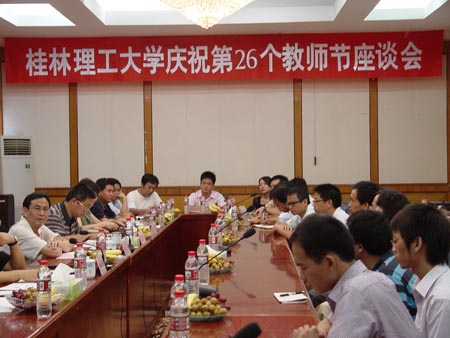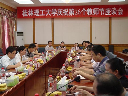 在第26个教师节来临之际,学校党委书记赵艳林、校长张学洪、副校长吴志强等学校领导分别于9月8日下午和9月9日上午分别出席了学校召开的新教师代表座谈会和骨干教师座谈会。代表学校党委、行政对各位与会代表致以节日的问候!并通过他们向全校教职员工致以节日的祝福! 在9月8日的新教师代表座谈会上,张学洪校长首先介绍了我校的历史沿革和发展状况,并就学校当前的师资、科研、人才培养和学科建设情况向与会的新教师代表进行介绍。之后,新教师代表们在轻松愉快的氛围中自由发言,表示会积极转变心态和角色,认真教学,积极参与各项学术科研活动,努力打造过硬的学术团队。相信桂林理工大学有校领导对青年教职工的高度重视、有浓厚的学术氛围,一定能朝着特色鲜明的高水平理工大学大步迈进。 赵艳林书记最后做总结发言,他首先传达了今年7月14日召开的全国教育工作会议精神和9月6日刚刚在南宁召开的广西全区教育工作会议精神。并对新教师提出了四点希望:一是以校为家,爱校如家。我校有浓厚的教学科研氛围,对教职工的工作、生活非常关注,希望大家能尽快融入这个大家庭,体会到这个大家庭的温暖;二是希望新教师有高度的责任感和使命感,尽职尽责,精心育人;三是希望新教师努力学习,发奋进取,不断提高业务能力和业务水平;四是希望新教师努力工作,瞄准目标,发挥自己的聪明才智,为建设特色鲜明的高水平理工大学贡献自己的力量。 在9月9日召开的学校骨干教师代表座谈会上,张学洪校长首先介绍了当前我校的教学科研情况。随后,来自各教学单位的14名代表纷纷对教学和工作中存在的问题建言献策。赵艳林书记、张学洪校长、吴志强副校长就各个代表提出的问题进行了认真地解答。 赵艳林书记从政策环境、学术环境、人文环境和生活环境四个方面向全体教师提出了共勉:一是希望大家能认真学习国家《中长期教育改革和发展规划纲要》和我区教育工作会议精神,切实增强人民群众的责任感和使命感,不辜负作为人民教师的光荣称号;二是不断提升自己的专业水平,在教书育人方面起到带头作用;三要加强交流,拓宽沟通渠道,为学校发展建言献策;四是各级领导、各个部门要关心关爱教师,为教师的工作、生活创造一个良好的环境。
