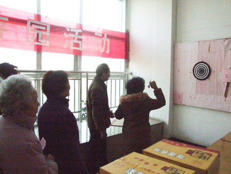 老同志们精神抖擞、兴致勃勃地参加了打门球、沙包投圈、投飞镖等游乐活动,离退处还为老同志们准备了丰富的奖品。我校离退休人员在一片欢乐祥和的气氛中,辞旧岁,迎新春。