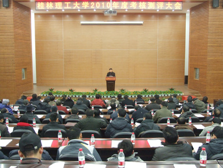 按照学校党委的工作部署,1月8日上午,学校在图书馆报告厅召开2010年度处级干部述职测评大会。学校校长张学洪,党委副书记、纪委书记赵君,党委副书记王赣华,副校长肖岳峰、陈学军、吴志强等校领导出席会议。学校13个本科教学单位,高等职业技术学院和博文管理学院的党政正职,其他处级单位(部门)的全体处级干部和部分教代会代表参加会议。大会由学校党委副书记赵君主持。 赵君副书记在会上指出,学校非常重视今年的年度考核工作,多次召开会议研究讨论考核办法。今年学校内设机构处级干部的年度考核采取在单位(部门)述职测评和学校大会集中述职测评相结合的方式进行,测评大会对13个本科教学单位和高等职业技术学院以外的处级单位(部门)及其处级干部进行年度考核测评。他要求参加考评的同志要提高认识,认真听取各单位负责人的述职报告,并按照全面考核、注重实绩、民主公开、客观公正的原则,对每位述职干部做出实事求是、客观公正的评价。