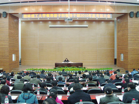 12月28日上午,学校在图书馆报告厅召开领导班子和领导干部2010年度考核大会。自治区党委组织部干部五处处长曾凯,自治区党委组织部吴仕宇,自治区高校工委黎先莅临指导。学校党委书记赵艳林,校长张学洪,党委副书记、纪委书记赵君,党委副书记王赣华,副校长肖岳峰、肖明贵、陈学军及学校全体中层干部和正高职称人员参加了会议。