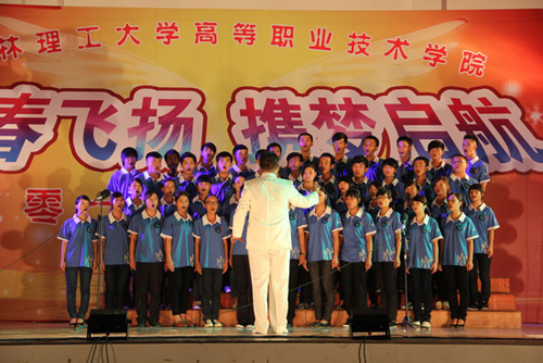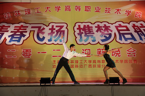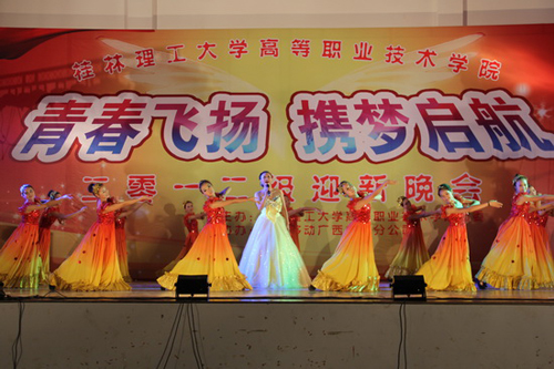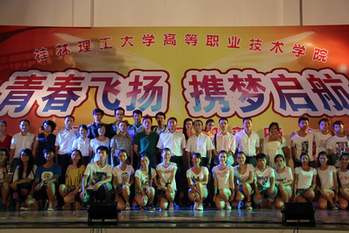 携梦启航催奋进,飞扬青春耀空港。9月28日晚,空港校区体育馆内人潮涌动、掌声不断,由我校高职学院团委主办的“青春飞扬·携梦启航”2012年迎新文艺晚会隆重举行。副校长刘宝臣及学院有关部门负责人出席晚会。该院近3400名2012级新生一同观看了精彩的演出。 晚会现场张灯结彩,热闹非凡。舞台灯光动感十足,现场音乐激情澎湃,呈现出了一派欢快、喜庆的景象。歌舞《让我们舞起来》结合绚丽的民族舞姿和美妙的女声歌唱,仿佛燃起现场观众的梦想之火,在一片掌声雷动的欢呼声中拉开了晚会的序幕;街舞《灵动舞步》用自由灵动的舞姿张扬青春个性,展现当代大学生的激情和活力;相声《你我他》取材于真实的校园生活,贴近校园文化,把发生在身边的生活故事用艺术形式展现在舞台上,引起了在场同学的共鸣;轮滑表演《花式轮滑》用轻盈的动作带给现场观众一种飘逸的美感,表演者们动作敏捷、技巧娴熟,他们用热情感染着台下的每一位观众;民族舞蹈《碧波孔雀》用柔美的傣族舞姿展现优雅美感,带给观众美的享受。由青年教师表演的群舞《幻境百老汇》用翩翩舞姿彰显青春朝气,他们仿佛为观众搭建了一座梦想的舞台;分别来自学校国际教育学院的非洲马达加斯加的米那同学和来自学校艺术学院的六名同学也为现场观众带来了精彩的表演。 晚会期间,副校长刘宝臣、该院党委常务副书记梁冬松为晚会当天过生日的十位同学送上了生日礼物和祝福。晚会现场通过微博平台与观众互动,让每一个学生通过微博在第一时间关注并参与到晚会活动中去,分享自己的感受,说出自己的心声,取得了良好的互动效果。