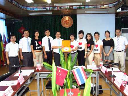 9月15日上午,泰国诗纳卡宁威洛大学(Srinakharinwirot University)代表团一行来访我校。学校副校长吴志强在屏风校区热情接待了来访客人。旅游学院、国际教育学院相关负责人参加了座谈会。 吴志强副校长代表学校对代表团的来访表示热烈欢迎。会上双方各自介绍了两校的基本情况,并就学生交流等相关问题进行了深入的探讨并达成一致意见。随后,泰国代表团一行参观了我校屏风和雁山两个校区。