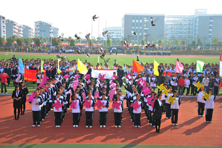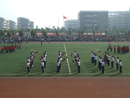 11月5日上午8:30分,伴随着初冬明媚的阳光,我校雁山校区运动场上锣鼓喧天、彩旗飘扬,到处洋溢着青春与梦想的气息,桂林理工大学第39届田径运动会在雁山校区运动场隆重开幕。学校党委书记赵艳林,校长张学洪,学校党委副书记、纪委书记赵君,副校长肖岳峰、陈学军、周国清以及学校各部门、各学院领导出席了开幕式。开幕式由赵君副书记主持。 在运动员入场仪式上,首先是象征大学生朝气蓬勃、锐意进取的第39届运动会会徽方队以铿锵的步伐走过主席台,接着是鲜花方队以及地球科学学院等16个学院各具特色的方块队依次迈着整齐坚定的步伐经过主席台,接受校领导的检阅。之后,进行了活力四射的团体健美操表演、跳绳和街头篮球秀。各个代表队服装统一,精神抖擞,口号响亮,步伐坚定有力,展示了我校良好的精神风貌。 在庄严的升国旗仪式之后,张学洪校长发表了热情洋溢的致辞,他指出:发展体育事业,增强人民体质,是践行以人为本的理念、促进人的全面发展的必然要求,而一年一度的运动会是全校的体育盛事,是我校广大师生展示风采、促进交流的舞台。希望广大师生积极参与“阳光体育”活动,用实际行动响应“每天锻炼一小时,健康工作五十年,幸福生活一辈子”这一时代口号;希望全体裁判员认真遵守裁判员准则,公正公平,优化赛场秩序;希望广大运动员在发扬拼搏精神、超越精神、合作精神的同时更要用团队的力量赢得比赛,跑得更快、跳得更高、投得更远。