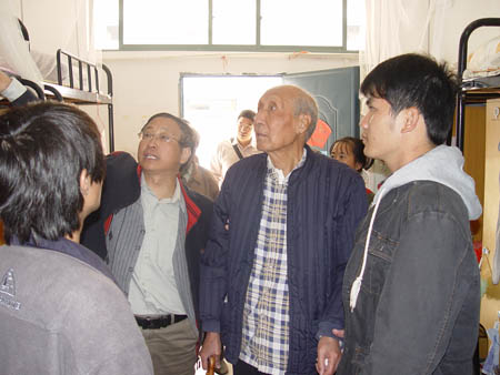 在雁山校区建设指挥部会议室里,刘宜河处长首先向柳老介绍了雁山校区的总体建设情况,并对柳老关注的校区建设问题一一做了回答。随后,陈学军副校长与柳老进行了亲切的交谈,把学校认真采纳柳老提出的宝贵意见和付诸实施的情况做了详细的反馈。座谈结束后,柳老还参观了校园,走访了学生公寓和食堂。