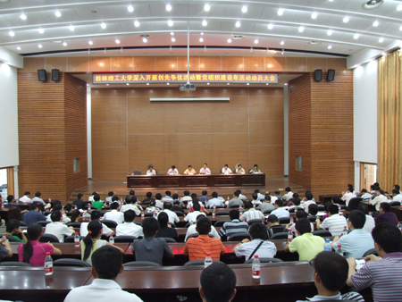 7月9日下午,学校召开深入开展创先争优活动暨党组织建设年活动动员大会,对在全校各级党组织和党员中深入开展创先争优活动进行动员部署。学校党委书记赵艳林,校长张学洪,党委副书记、纪委书记赵君,党委副书记王赣华,副校长陈学军,党委委员、校长助理华桂林,党委委员、组织部部长陈贵英出席大会。各二级党组织书记、副书记、委员、各党支部书记、党委职能部门全体成员参加大会。 会上,学校党委书记赵艳林作动员讲话。他指出,在党的基层组织和党员中广泛开展“创建先进基层党组织、争做优秀共产党员”的活动,是继深入学习实践科学发展观活动后,中央部署的又一重大活动。学校各级党组织和全体党员要站在讲政治、讲全局的高度,充分认识深入开展创先争优活动的重要意义,把思想统一到学校党委的决策部署上来,切实增强开展活动的责任感和紧迫感,扎实推进创先争优活动的有序有效开展。 赵艳林书记就贯彻落实中央和自治区党委、自治区高校工委精神,深入开展我校创先争优活动提出四点意见:一是统一思想,提高认识,充分认识深入开展创先争优活动的重大意义,增强工作的主动性和责任感;二是准确把握上级和学校党委的决策部署,明确方向,确保创先争优活动扎实开展;三是立足实际、服务大局,切实增强开展创先争优活动的针对性和联动性;四是落实责任,强化措施,切实加强创先争优活动的组织领导。 赵艳林书记强调,我校开展创先争优活动,重在坚持、重在深入、重在落实。我们一定要按上级党委和学校党委的部署,扎实开展好创先争优活动,不断增强基层党组织和广大党员的创造力、凝聚力、战斗力,为推进学校又好又快发展提供强大的动力和组织保证。 学校校长张学洪主持会议并作了讲话,他希望各二级党委、直属党支部要认真学习、深刻领会赵书记讲话精神并做好组织传达。要求各单位、各部门成立本单位、本部门创先争优活动领导小组和办公室,加强对本单位创先争优活动开展的动员、领导和组织实施,确保把各项工作落到实处。