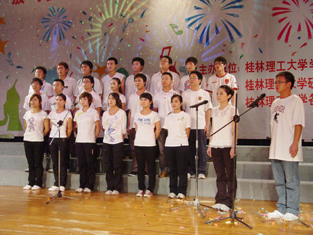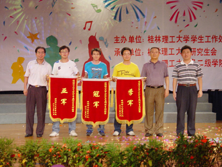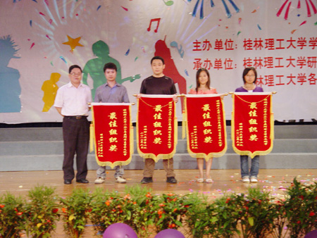 6月20日晚,学校第六届研究生学术文化节闭幕式晚会暨“展望桂工,放飞青春”毕业生欢送歌会在南校区礼堂举行。学校副校长吴志强、学工处、研究生处以及各学院主管研究生教育的领导参加了晚会。来自广西师范大学、桂林电子科技大学、桂林医学院研究生会代表以及我校研究生共聚一堂,联欢联谊。 晚会现场,来自各学院的研究生通过合唱、独唱等形式展现了我校研究生风采,同时各位领导还为学术文化节最佳组织奖、研究生足球联赛等奖项获奖学院颁发了锦旗与奖状。 吴志强副校长发表了热情洋溢的讲话,他肯定了研究生学术文化节在营造浓郁校园文化氛围,促进研究生之间与师生交流方面所做出的贡献,寄语应届毕业研究生秉承“桂工”精神,主动适应社会,在工作岗位上建功立业;同时希望研究生毕业后继续关心母校发展,常回家看看。 研究生学术文化节是我校研究生的品牌活动,自2005年以来每年一届,一届比一届精彩。第六届研究生学术文化节自5月初开始,历时一个半月,期间共举行“导师相约,共话成长”座谈会、学术沙龙、专题学术讲座、考博就业经验交流会、研究生趣味运动会、研究生足球联赛、研究生学生干部培训等活动,极大丰富了我校研究生第二课堂,搭建了研究生与导师之间交流平台,促进了研究生学术素养提高和身心健康发展。
