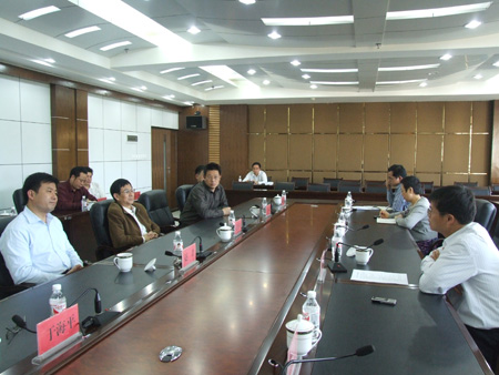 扶绥县委副书记、副县长罗彪(右一)介绍扶绥县经济建设发展情况