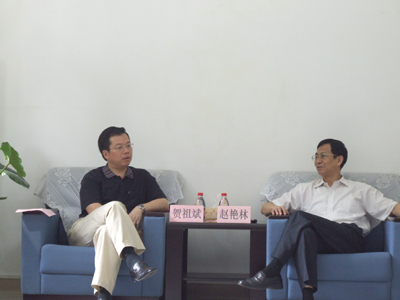赵艳林校长(右)与贺祖斌副院长(左)交流工作