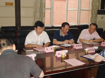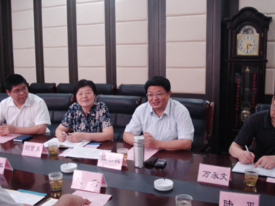 成都理工大学党委书记谭书敏(左三)、副书记刘京美(左二)介绍办学经验