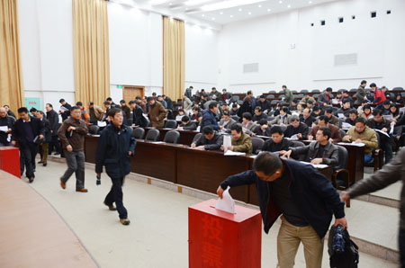 为优化干部队伍结构,提升干部素质,充实完善领导班子有生力量,以适应学校快速发展所面临的新形势、新任务的需要,根据校党委决定,学校于3月15日下午,在屏风校区图书馆报告厅召开了处级后备干部民主推荐大会。校党委副书记、纪委书记、后备干部选拔领导小组副组长赵君出席会议,全校处级领导干部及各职能部门、二级学院科级以上干部参加了大会,会议由校党委组织部部长陈贵英主持。 赵君副书记在大会上指出,要充分认识后备干部选拔推荐工作的重要意义:后备干部队伍建设是推进学校各项事业科学发展的必然要求 ;选拔推荐后备干部是加强中层领导班子建设的紧迫任务,是充实完善领导班子有生力量的重要途径;培养和建立素质优良、数量充足、结构合理、能够担当学校科学发展重任、经得起考验的后备干部队伍,才能为学校事业的可持续发展提供坚强有力的组织保证。赵副书记在会上强调,一定要严格要求和纪律,确保公开选拔后备干部工作的顺利进行,要认真坚持选拔标准,把好资格审查关,坚决杜绝弄虚作假等行为,自觉维护公开选拔工作的公平、公正。要严格遵守选拔纪律,要从工作和事业出发,以对党、对学校、对事业、对同志高度负责的态度,认真行使自己的民主权利,实事求是、客观公正地推荐干部,确保圆满完成此次推荐工作。 党委组织部陈贵英部长在会上就推荐处级后备干部的基本条件、基本资格以及推荐过程中需要注意的问题进行了具体说明。 最后,全体到会人员进行了处级后备干部民主推荐投票。