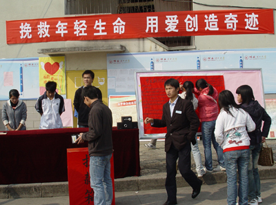 12月4日,“感恩的心,感谢有你…..”的旋律再一次在桂林理工大学的校园飘荡,校园里,再一次人潮涌动,一颗颗爱心在这里汇聚成爱的海洋。一幕幕关爱的场景在人们的脑海里浮现…… 桂林理工大学人文社会科学学院行政管理05-1班王跃同学,一个风华正茂的年轻生命,在即将迈出大学校门、展开他的人生理想时,一纸白血病的诊断书却无情地打破了他所有的希冀。他的不幸,着实让人同情,而得知他患病后,学校给予他的人道关怀,更是令人感动不已。 今年4月,正在企业实习的王跃在北京被确诊为白血病的消息在桂林理工大学传开后,立即引起了学校领导的高度重视和关心,学校和有关部门多次召开党政会议对王跃同学医治问题进行研究,积极组织了各种帮助和人道主义资助。在学校爱心基金中,按最高额度提供大病救助2万元。同时,还给予最高额度的学生困难补助2千元。此外,积极联系桂林市民政部门,在非常住户口不享受相关政策的情况下,额外争取到大病救助2千元;在医疗保险理赔尚未到位的情况下,先预垫付理赔款2万元。 这一切的奔走,只为了尽最大可能挽救他的生命,也为他的家庭提供最大可能的帮助! 在生命面前,爱心更表现出了无私和无价。学校先后几次为王跃同学组织募捐,校长张学洪在第一时间捐款,多次捐款累计已达2千多元;王跃所在学院从人道主义出发提供资助2千元。募捐活动还先后在学校及桂林市区多次展开。据不完全统计,所组织的募捐活动共筹集募捐款额达9万2千多元。其中,多数为学校师生捐助。今年6月,学校又派人文社会科学学院和学工处的领导专程前往北京道培医院探望王跃,了解他的病情和医治情况,鼓励他树立信心、战胜病魔,并送去资助款项。 今年的8月20日,王跃同学在北京市道培医院接受了骨髓移植手术,其治疗费用已经高达63万之多。目前,他仍然处在排异观察期,每月的维护费用在2万元左右,这对于一个普通家庭来说,无异是个天文数字。眼看一个21岁豆蔻年华的生命又一次徘徊在了生死边缘。他的情况,又再一次牵动着全校师生员工的心。 12月4日,在学校团委、学生会的组织下,全校再一次举办了以“挽救年青生命,用爱创造奇迹”为主题的募捐活动。主管学生工作的党委副书记王赣华一直关心着对王跃的捐助工作,早早就来到了现场并捐上了爱心款,赵艳林书记、张学洪校长、阮百尧副校长等学校领导也在百忙中赶到现场进行了捐款。 退休的老教师拄着拐棍不畏寒冷也来了,一群群师生在捐款之后匆匆离去,不留姓名……大家都希望尽自己的一点微薄力量去帮助王跃同学战胜病魔。目前,募捐活动还在进行中,活动后学校将委派专人把所得捐款全部转交王跃同学用于疾病治疗。 然而,大家都清楚:王跃所面临的直接问题是高达百万元的医疗费用。对于白血病治疗,这并不多。而对于普通家庭,却是无法承受的天文数字。此时此刻,对于正处于康复关键时期的王跃来说,多伸出一双手,多献出一份爱心,他的人生就一定会多一分希望。衷心希望大家能向王跃伸出援手,一起来关注他逐渐康复,一起看着他重绽生命的笑容!