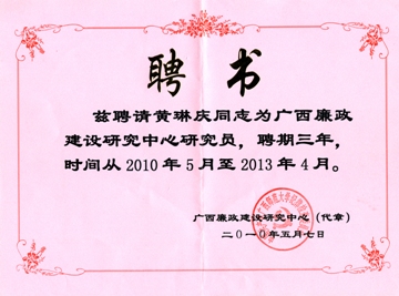 我校黄琳庆教授被广西廉政建设研究中心特聘为首批研究专家
