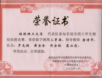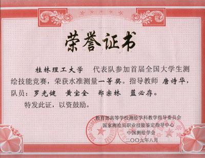 7月30日至8月1日,首届“南方杯”全国大学生测绘技能竞赛在河南理工大学举行。来自全国32所设有测绘二级学科硕士点本科高校的128名选手、32名指导教师参加了比赛。 大赛由教育部高等学校测绘学科教学指导委员会、国家测绘局职业技能鉴定指导中心、中国测绘学会联合主办,河南理工大学承办。比赛分为测绘实践技能与理论知识考核两个环节,其中测绘实践技能包含了一级电磁波测距导线、四等水准测量和数字测图等3项内容。全国高校测绘学科教学指导委员会、测绘学会教育委员会主任宁津生院士等国内测绘行业10余位专家及相关领导出席并观看了比赛。 此次比赛,我校土木与建筑工程学院组建了测绘系唐诗华、文鸿雁、任超、卢献健等老师组成的指导小组,经过层层考核,选拔了测绘工程专业罗光健、黄宝全、蓝必存、郑宗林四位同学作为我校唯一一支代表队。在唐诗华老师的精心指导下,选手们经过了为期长达四个月的艰苦训练,其中包括二公里的水准路线、每段二百米共计五段的闭合导线路线以及200*200平方米的数字测图三项内容。 7月30日至7月31日圆满完成三项比赛内容。经过两天紧张有序的比赛,我校代表队取得了水准测量一等奖、数字测图测量三等奖的优异成绩。四名同学的优异表现展现了我校测绘工程专业学子的风采。