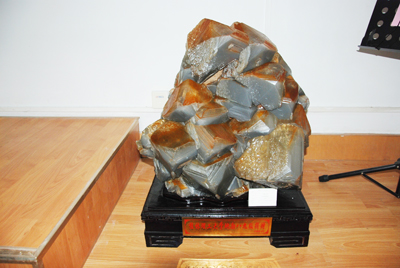 地质89级校友捐赠的矿物标本(产于湖南的方解石晶体)