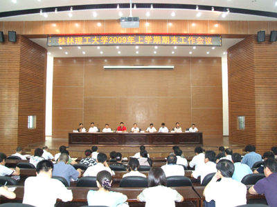 7月18日下午,我校在图书馆报告厅召开2009年上学期期末工作会议。会议由学校党委副书记张学洪主持,学校党委书记黎志逘,校长赵艳林,党委副书记、纪委书记赵君,副校长李祥清、阮百尧、肖明贵,校长助理华桂林、陈学军出席会议。学校全体中层领导干部参加了会议。 赵艳林校长在会上对本学期学校主要工作作了总结,并对暑假期间及下学期有关工作进行了部署。赵艳林校长指出,今年是学校建设发展史上极不平凡的一年,这个学期,也是学校建设发展当中十分重要的时期,一个学期以来,在自治区党委、政府的正确领导下,学校党委、行政团结带领全校师生员工,围绕学校发展的既定目标,做了大量卓有成效的工作和努力,学校各项工作在原有的基础上又有了新的发展和进步。一是深入开展学习实践科学发展观活动。学习实践活动措施得力,方法多样,活动扎实,特色鲜明,目前整改落实阶段的各项工作正在紧张进行当中。二是学校正式更名为桂林理工大学,学校取得了MBA学位授权资格,博士点建设工作进展顺利。三是教学、科研、人才引进、毕业生就业等日常工作顺利推进。赵艳林校长回顾了我校在教学、科研、人才引进工作所取得的巨大进步,并向全体与会同志通报了我校毕业生就业工作所取得的好成绩:“截止7月17日统计,2009届研究生就业率达86.48%,本科生达86.44%,高职学生达80.89%,提前超额完成了自治区提出的75%的目标任务,研究生和本科毕业生就业率也已完成学校提出的85%的目标任务。”赵艳林校长指出,这些成绩的取得,主要是自治区党委、政府正确领导的结果,更是全校广大教职员工、特别是在座的同志们团结一致,发扬“桂工精神”,奋发图强,共同奋斗的结果。他代表学校党委、行政对在座的同志们并通过他们向广大教职工员工表示衷心的感谢和崇高的敬意。就认真做好假期和下学期各项工作,赵艳林校长作了以下部署。一是要认真做好学生的搬迁和新校区管理工作。二是要认真做好假期有关工作。要做好假期校园的安全稳定和值班工作,学习实践科学发展观活动整改落实阶段的各项工作,新老校区一些房子、水电设施的维修,特别是学生宿舍、教室的维修工作,争取材料实验室申报国家培育重点实验室的有关工作,以及招生工作和毕业生就业后续工作。三是要认真抓好新校区建设和老校区完善工作。四是要认真抓好博士点建设。五是教学质量工作项目要抓紧落实。六是科研工作要继续加大力度。七是认真做好人才引进和职称评审工作。八是认真做好人事分配职工改革工作,假期要做好调研工作。九是认真做好下学期新生开学各项准备工作。最后,赵艳林校长强调指出,今年的时间已经过半,接下来的任务还异常繁重,他希望全校上下特别是中层干部要进一步统一思想,提高认识,明确任务,抓好落实,要带头示范,强化责任意识,把心思和精力用在学校的建设发展上,以饱满的精神风貌和优异的成绩,迎接新中国成立六十周年,迎接学校更加辉煌灿烂的明天。 阮百尧副校长就加强教学质量工程建设力争取得好成绩和抓紧时间做好搬迁工作提出了具体的要求。 黎志逘书记发表了讲话。他简短回顾了学校近两年来在新校区建设、更名大学、申报博士学位授予权、申报MBA学位授予权等方面工作所取得的喜人成就,并对全校领导干部及广大师生员工在取得这些巨大成绩的过程中所付出的辛勤劳动给予了高度的肯定。就学校今后的发展,黎志逘书记指出,桂林理工大学任务繁重,使命光荣,我们坚信,在自治区党委、政府的正确领导下,在学校党委、行政班子带领下,在全体中层领导干部和全校教职员工的共同努力下,桂林理工大学的明天一定会更加美好,我们的学校一定能够实现新的腾飞!