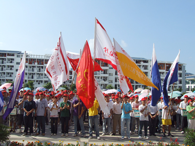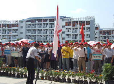 为了贯彻落实党中央关于围绕庆祝新中国成立60周年,深入开展群众性爱国主义教育活动的决策部署,按照教育部在全国各级各类学校组织开展主题实践活动的要求,7月10日下午,学校在雁山校区教三楼前广场举行了2009年暑期“三下乡”社会实践启动仪式。各学院的学生志愿者参加了本次启动仪式。 本次启动仪式由学校团委副书记李辉主持。学校党委副书记、纪委书记赵君,党委宣传部部长、统战部部长于海平,校团委书记辛立章,党委学工部副部长、学工处副处长张雷以及各学院分团委书记受邀出席本次活动。 在热烈的掌声中,启动仪式拉开了帷幕。校团委书记辛立章介绍了学校2009年社会实践活动的总体安排,明确了本次实践活动的主题——“弘扬爱国主义,服务科学发展”,并对本次实践活动提出了四点要求:全面发动,精心组织;扩大覆盖,注重建设;重视宣传,营造氛围;加强教育,确保安全。 学生志愿者代表梁伟同学、社会实践指导老师代表蒋琼分别发言。梁伟同学向广大志愿者发出自觉肩负起建设祖国重任的号召,并代表全体志愿者向各位领导老师承诺,在实践活动中发扬团结协作,不怕吃苦、认真务实、严守纪律的精神,保证顺利完成本次活动。随后,全体志愿者进行宣誓,响亮的誓言代表着志愿者锻炼自我,报效祖国的壮志雄心。 学校党委副书记、纪委书记赵君在会上作了讲话。赵君副书记对参与本次实践活动的志愿者提出了四点要求:一要认知社会,增强使命感和责任感;二要不断学习,增强服务社会的本领;三要通过实践,进一步坚定走中国特色社会主义道路的理想和信念;四要精心组织,进一步增强安全意识。赵君副书记同时希望全体志愿者以满腔的热情、良好的精神风貌,圆满完成此次社会实践活动。 最后,赵君副书记和受邀出席本次启动仪式的各位领导分别为社会实践团队授旗。