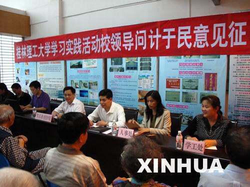 桂林理工大学校长赵艳林说,开展本次活动主要体现学校领导班子紧密联系实际、紧密依靠群众领导学校科学发展、办人民满意大学的决心和信心,也是学校扎实做好开展深入学习实践科学发展观活动,学校领导班子深入调查研究问计于民工作的一项重要举措。赵艳林说,这次包括雁山新校区在内共设6个征集活动点,对于活动中征集到的意见和建议通过整理梳理后上报学校学习实践活动领导小组办公室,为学校的科学发展提供了重要的决策依据。