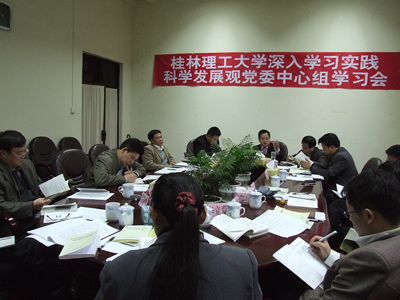 4月9日下午,学校召开党委中心组学习会。会议由党委书记黎志逘主持,党委中心学习组全体成员参加会议。与会同志在会上集中学习了《深入贯彻落实科学发展观要积极构建社会主义和谐社会》、《深入贯彻落实科学发展观要继续深化改革开放》、《深入贯彻落实科学发展观要切实加强和改进党的建设》等重要篇目。 在会上,副校长李祥清、阮百尧、肖明贵,校长助理陈学军就深入学习实践科学发展观的体会作了中心发言。发言同志都深刻认识到:通过近段时间的学习,对科学发展观的科学内涵、精神实质和根本要求有了更深入的领会,进一步认识到科学发展观确实是中国特色社会主义理论体系的重要组成部分,是我国经济社会发展的重要指导方针,是发展中国特色社会主义必须坚持和贯彻的重大战略思想,也是学校加快发展、科学发展必须坚持和贯彻的重大战略思想;在科学发展观的指导下,结合我校成功更名为桂林理工大学的实际,要进一步明确学校的办学理念、办学定位,在学科专业调整、师资队伍建设、质量工程建设、服务社会等方面进行战略性的全面规划,适应理工大学新的要求,促进学校又好又快发展。 黎志逘书记作了讲话,黎书记强调,一定要按照中央和自治区党委的统一部署,高度重视对科学发展观的学习。党委中心组成员要身体力行,带头学习、实践好科学发展观,严格按照学校党委《关于开展深入学习实践科学发展观活动实施方案》规定的步骤、阶段、方法开展好学习实践活动。当前阶段,必须认真学习原著,深刻领会科学发展观的内涵、产生的背景和重要意义,并且组织带领广大党员学习好实践好科学发展观。