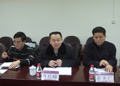 肖岳峰副校长(中)向专家组汇报工作情况