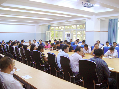 5月27日下午,学校党委书记黎志逘到管理学院指导工作,并参加了管理学院全体教职工会议。 在7309会议室,黎书记在听取了管理学院各领导的分管工作汇报后,对管理学院的工作尤其是管理学院在MBA学位点申报工作上所作出的努力及取得的成绩给予了充分肯定。他说,管理学院成绩的取得归功于领导班子能够团结一致,受益于全体教职工能够上下一心紧紧围绕学校发展大局扎实工作。黎书记希望管理学院能够按照科学发展观的要求,结合自身实际和学校今后几年发展的指导思想、工作目标和总体思路,理清工作思路,制定发展总体目标,充分调动广大教职员工的积极性,围绕目标,团结一致,将学科建设、科研等各项工作推向一个新的台阶,将管理学院办成一流的学院。