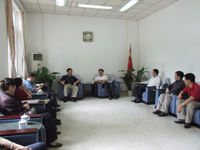党委书记黎志逘与评估专家组座谈