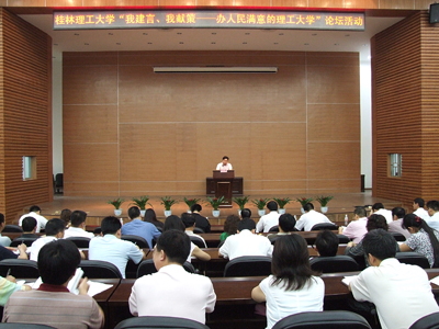 学校的建设我出一份力,学校的发展我尽一份心。这是在5月13日开展的“我建言、我献策,办人民满意的理工大学”论坛活动中,学校的党员干部们普遍发自内心的声音。 论坛活动于上午9点在图书馆报告厅举行,自治区学习实践活动指导检查组高校第四组组长梁启光同志、成员刘红同志亲临指导。学校党委副书记、学校深入学习实践科学发展观活动领导小组副组长张学洪教授,党委副书记、纪委书记、学校深入学习实践科学发展观活动领导小组副组长赵君教授,副校长肖明贵教授,校长助理陈学军教授和学校全体副处以上领导干部、学习实践活动领导小组办公室全体人员、教师代表、离退休教师代表、民主党派代表、无党派人士代表、学生代表参加了论坛活动。活动由党委宣传部、统战部部长,学校深入学习实践科学发展观活动领导小组办公室副主任于海平主持。 在论坛上,来自学校各院(系)党总支、直属党支部、机关党委的19位代表在充分发动,广泛收集党员干部和群众的意见、建议的基础上,紧扣“推动学校科学发展,办人民满意的理工大学”这一主题,围绕学校教学、科研、管理、服务等方面工作,提出了建设性意见、建议,大家的发言观点鲜明、见解深刻,具有较强的针对性。 赵君副书记在听了代表的发言后,肯定了大家的建言、献策真正是做到了从我做起,从现在做起,是为学校科学发展、办人民满意的理工大学提供了真经、妙计、良方。对下一步的工作,赵君副书记指出,要认真汇总各代表的意见并进行梳理和研究,把提出的具体问题和措施提供给学校做决策参考;各单位、各部门要以论坛活动的开展为契机,切实做好本单位、本部门问计于民的工作,向基层求取良方,以提高执行力和工作水平。他还表示,学校一定会创造条件,营造民主的氛围,通过广开言路、问计于民,让师生的智慧广为激发,让创新的真知灼见迸射火花,最终扎扎实实地实现学校科学发展的目标。 指导检查组梁启光组长最后肯定了19位发言的同志在学习调研的基础上,经过充分的思考,为建好桂林理工大学出了很好的主意;肯定了我校学习实践科学发展观活动的学习调研阶段工作开展得扎扎实实。他还通过“理清思路,努力实践,实现高校科学发展”三方面的认识,对我校的科学发展提出了指导意见,并祝愿桂林理工大学更加兴旺发达。 开展“我建言、我献策,办人民满意的理工大学” 论坛活动,是我校继学校领导班子“一问二请”问计于民意见征集活动、学校主要领导带队到七星区和雁山区进行“学校如何更好地为地方经济建设和社会发展服务”为主题的调研活动后又一项深入调查研究问计于民的活动,论坛的举办,进一步推进了学校学习实践活动的深入开展,深化了“推动学校科学发展,办人民满意的理工大学”这一主题,把学习实践活动真正化为了集中民智、聚合民力、破解难题、促进发展的物质力量,对确保学校“一问二请”工作取得成效起到了非常积极的作用。