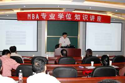 5月8日下午,应我校邀请,广西大学MBA教育中心主任秦建文教授在教七楼7307教室作了题为《MBA教育的现状与未来》的MBA知识讲座。我校相关职能部门领导及管理学院相关人员聆听了讲座。 秦教授首先从MBA(工商管理硕士)教育的特点谈起,介绍了MBA教育与科学硕士教育的区别,以及国外MBA发展状况,特别介绍了广西大学开办MBA教育的成功经验,并对如何办好MBA教育提出了自己的见解。讲座结束后,秦教授对相关职能部门领导和专业老师提出的关于MBA教育过程中招生、教学、学生管理等问题做了详细的解答。这次讲座,加深了我校职能部门和专业教师对MBA相关知识的了解,对我校申报MBA专业硕士点具有重要的指导意义。