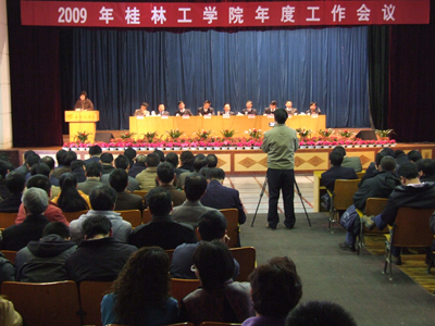 2月20日下午,学院在南校区礼堂召开2009年度工作会议总结大会,学院党委书记黎志逘、院长赵艳林、党委副书记张学洪、党委副书记赵君、副院长阮百尧、副院长肖明贵和院长助理华桂林、陈学军、顾炳根在主席台上就座。学院全体中层领导、各院系办公室主任、机关正科级干部参加了总结会。 大会分两个阶段进行。首先在赵君副书记的主持下,各个小组分别汇报了各自讨论的情况,汇报中大家都认为赵艳林院长作的年度工作报告是一个务实而又鼓舞人心的报告,各系院和相关部门还对贯彻好报告的精神、落实报告中提出的工作任务明确了具体的思路和计划。 随后进行的总结在赵艳林院长的主持下进行,黎志逘书记作了总结报告。黎志逘书记在报告中总结了2009年度工作会议取得的收获:一是大家充分肯定了赵院长工作报告中总结的2008年取得的成绩和经验;二是开学初召开全体教职员工大会,全面部署、认真讨论一年的工作的会议形式得到大家的充分肯定;三是理清了工作思路,明确了工作目标;四是统一了思想,增强了信心;五是对学院的发展提出了问题和建议。对更好地落实赵艳林院长的工作报告,更好地做好2009年的工作,黎志逘书记强调了几点要求:1、加强学习,提高素质;2、认清形势,增强信心;3、增强大局意识、服务意识;4、转变作风,扎实工作;5、珍惜岗位,珍惜友谊,精诚团结。 赵艳林院长最后要求大家认真体会、领会黎志逘书记的讲话和2009年度工作报告精神,把各项任务层层分解,落实到人,制定出具体的措施,他希望全体教职员工团结在学院党委周围,按照学院的部署,更加勤奋地工作,继续发扬“桂工精神”,团结一致,开拓创新,艰苦奋斗,圆满完成2009年各项工作任务。