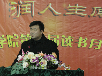 日前,由图书馆、团委共同主办、学生社团工委、社团联承办的学院第二届读书月闭幕式暨颁奖典礼在雁山校区05102教室隆重举行。学院党委副书记、纪委书记赵君出席闭幕式并讲话,图书馆、团委领导出席闭幕式暨颁奖典礼。 本届读书月以“与经典同行,润人生底色”为主题,历时2个月,旨在培养学生“爱读书、会读书、读好书”的良好习惯,开拓学生视野,丰富学生知识,使学生在读书中成长,不断提高人文修养及自身综合素质,提高校园文化活动品味和格调,构建特色校园文化。 闭幕式上,承办单位代表凌日飞同学做了活动总结,播放了读书月活动宣传片,公布了同学们心目中最喜爱的十部经典名著、经典影片,为优秀读者、活动先进个人、征文比赛、自制书签征集比赛获奖同学颁发了荣誉证书。 赵副书记在讲话中指出:对于人的成长成才,教育是外在因素,自身努力是内在因素,社会实践则是基石。因此,同学们要成长成才,就必须向实践学习,通过实践增长知识和本领。他强调:对于大学生来说,自我教育更加重要,而读书就是实现自我教育的捷径之一,参与读书月活动就是向实践学习的有效途径。他要求有关部门要把读书月活动坚持开展下去,不断丰富活动内容,创新活动形式,使这项活动真正成为广大同学乐于参与、能够受益的校园文化品牌活动。同时,他希望越来越多的学生积极参与到活动中来,多读书,有选择的读书,读好书,养成读书的好习惯,不断积累知识、升华品格,滋润人生底色,树立终身学习的观念。
