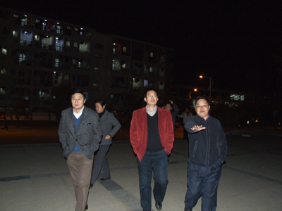 张学洪校长(中)、王赣华副书记(左)、吴志强副校长)右)巡视校园
