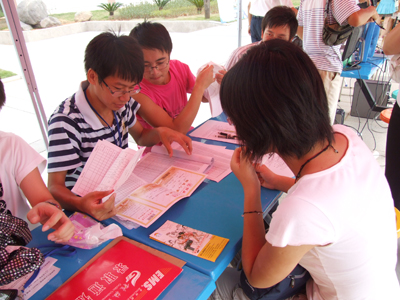 志愿者正在查看我校09级新生录取通知书,确保乘车新生为去往雁山校区的2009级本科新生