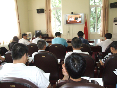 收看视频会议(前排左二:赵君,前排左三:张学洪)