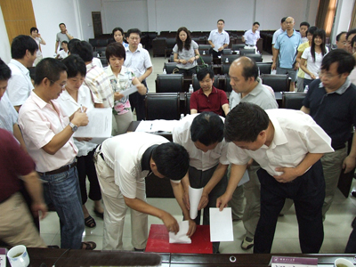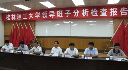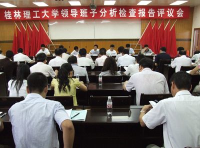 6月24日上午,学校召开党委领导班子分析检查报告群众评议会。会议由学校党委书记黎志逘主持,校长赵艳林,党委副书记、纪委书记赵君,副校长李祥清、阮百尧、肖明贵出席会议。教师党员代表、学生党员代表、民主党派代表和各职能部门负责人等50多位代表参加了会议。自治区学习实践活动高校指导检查四组组长梁启光到会指导。 黎志逘书记对分析检查报告的形成和修改情况进行了说明。黎书记强调,评议的内容要同分析检查报告的主要内容统一起来,着重评议领导班子对科学发展观的认识深不深、查找的问题准不准、原因分析得透不透,对进一步贯彻落实科学发展观的思路清不清、制定的工作措施行不行,加强领导班子自身建设的具体措施有没有针对性和可操作性等几个方面。 梁启光组长充分肯定我校学习实践活动开展扎实,取得了实效,相信在科学发展观的指导下,我校的各项工作一定会取得更大的成绩。 最后,与会代表认真填写了评议表,对学校领导班子分析检查报告进行了评议。党委领导班子将根据群众评议情况再次对分析检查报告进行完善。