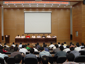 4月9日下午,我院在图书馆报告厅召开继续解放思想大讨论活动学习动员阶段总结暨讨论调研阶段工作部署会。学院党委书记黎志逘,院长赵艳林,党委副书记张学洪,党委副书记、纪委书记赵君,副院长李祥清、阮百尧、肖明贵,党委委员、院长助理华桂林在主席台上就座。会议由学院院长赵艳林主持,黎志逘书记在会上作了重要讲话。学院副处以上干部、职能部门全体管理干部、全体学工干部、各系(院、部)办公室主任参加了会议。 会议首先由土木系、材化系、学工部汇报了各自单位和部门开展继续解放思想大讨论活动学习动员阶段的情况。 黎志逘书记在讲话中首先肯定了学院深入动员,精心准备,继续解放思想大讨论活动取得良好开局。他说,学院党委认真落实自治区党委、自治区高校工委的统一部署,以解放思想为先导,以科学发展观为统领,以中层干部为重点,以学习讨论为主要形式,积极开展继续解放思想大讨论活动,通过抓好组织发动,加强学习和宣传,在学院内掀起了解放思想的热潮,从总的情况看,学习动员阶段基本达到了预期的目的,为整个活动的开展奠定了坚实的思想基础。对学院开展继续解放思想大讨论活动学习动员阶段情况黎志逘书记从五个方面进行了总结:一是切实加强领导,为大讨论活动提供了坚强有力的组织保证;二是广泛宣传发动,不断激发和调动干部教师参与大讨论活动的内在动力;三是深入学习讨论,进一步增强了解放思想、加快发展的紧迫感;四是加强舆论引导,为大讨论活动营造了良好的社会舆论氛围;五是坚持理论联系实际,确保大讨论活动取得实效。 黎志逘书记还对继续解放思想大讨论活动讨论调研阶段工作进行了部署和安排,提出要周密部署,认真组织,扎实推进继续解放思想大讨论活动。他指出要在四个方面着力推进活动的开展:1、要在深化认识上着力推进大讨论活动。要深化对继续解放思想重要性、长期性和特殊性的认识。2、要在重点领域、关键环节上着力推进大讨论活动。一要冲破阻碍科学发展的思维定势,二要克服阻碍科学发展的思想作风,三要消除阻碍科学发展的不良环境。3、要在创新方法、丰富载体上着力推进大讨论活动。一要领导干部带头,二要深入调查研究,三要学习先进经验,四要创新活动载体。4、要在结合实际、务求实效上着力推进大讨论活动。要特别注意把大讨论活动与推动学院发展结合起来,要认识到加快发展是当前我们学院最大的政治、最硬的道理、最紧迫的任务,是我们开展继续解放思想大讨论活动的根本目的,也是检验大讨论活动成功与否的根本标准;我们要牢固树立科学发展观、加快发展的观念,坚持“好”字优先、好中求快;要从学院的校情出发,把握发展规律,铆足干劲,聚精会神搞建设,一心一意谋发展;要站在全局高度上,用开阔视野审视学院的发展战略,完善发展思路,强化发展措施,调整发展政策,转变发展方式;要认真研究更好地推进学院的“两申”和新校区建设工作的思路和方法,同心同德,形成合力,全面完成各项发展目标。 黎志逘书记最后提出要强化措施,狠抓落实,为推进继续解放思想大讨论活动提供有力保障。他要求各单位、各部门一要精心谋划,认真组织;二要总结经验,推广典型;三要加强督查,确保落实。他希望大家按照学院党委的部署和要求,进一步增强政治意识、大局意识和责任意识,加油鼓劲,再接再厉,以良好的精神状态和扎实的工作作风,确保继续解放思想大讨论活动扎实稳步推进,取得实实在在的效果。