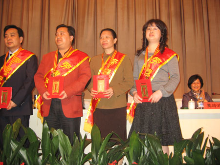 吴群英教授(右二)在桂林市劳动模范表彰大会上领奖