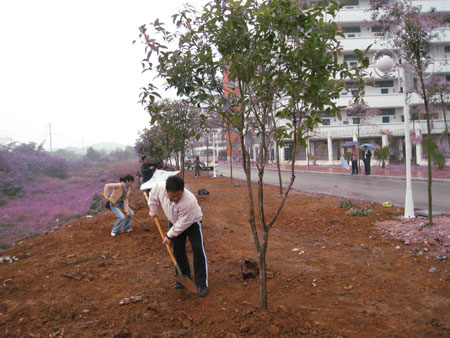 吴志强副校长(前)率党办、校办干部在雁山校区植树