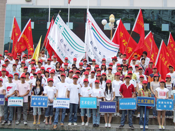 7月11日上午,由院团委组织、以“科学发展新农村、青春唱响北部湾”为主题的学院2008年暑期“三下乡”社会实践活动启动仪式在体育馆前举行。出席启动仪式的领导和老师有学院党委委员、院长助理、人事处处长华桂林,学院党委办公室、院长办公室主任莫坷,学院党委学工部部长、学生工作处处长熊英,学院党委宣传部、统战部副部长钟克庆,学院团委书记辛立章以及各系院分团委书记;各社会实践团队的同学们参加了启动仪式。仪式由学院团委副书记李辉主持。 学院团委书记辛立章从活动主题、总体要求、主题活动等方面介绍了学院2008年社会实践活动的总体部署和安排。学生志愿者代表官红艳同学、社会实践指导教师代表周国桥老师先后作了发言。会上,还举行了授旗仪式,与会领导为各社会实践团队授旗。 学院党委委员、院长助理、人事处处长华桂林在会上对本次社会实践活动提出了希望和要求:一要牢固树立“安全第一”的思想,确保师生安全;二要紧扣实践活动的主题,扎实开展工作,确保活动取得实效;三要在实践活动中以实际行动进一步践行社会主义荣辱观;四要吃苦耐劳,善于思考,通过实践活动进一步提高素质。